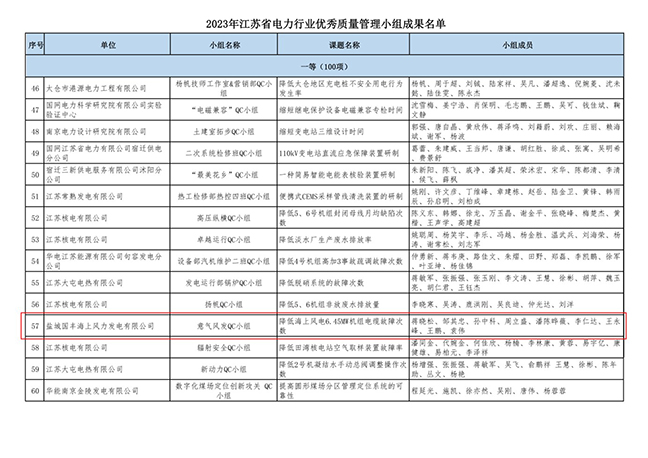 日前,在江蘇省電力行業(yè)協(xié)會主辦的2023年度QC成果發(fā)布會上,鹽城國豐公司QC小組“降低海上風(fēng)電6.45MW機(jī)組電纜故障次數(shù)”這一課題,經(jīng)過資料評審、現(xiàn)場發(fā)布等多個環(huán)節(jié),榮獲成果一等獎。