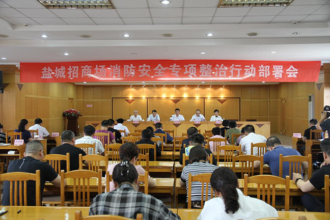 近日,鹽城招商場召開消防安全專項整治行動部署會,公司班子成員、各部室管理人員和商戶代表參加會議。