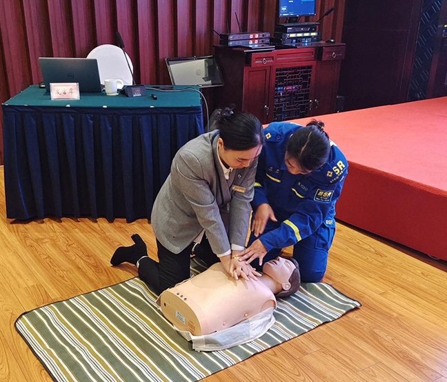 為進一步普及應急救護常識,提升員工的自救互救能力,日前,國投大酒店開展了應急救護知識培訓活動,特邀鹽城市藍天救援隊到場指導。