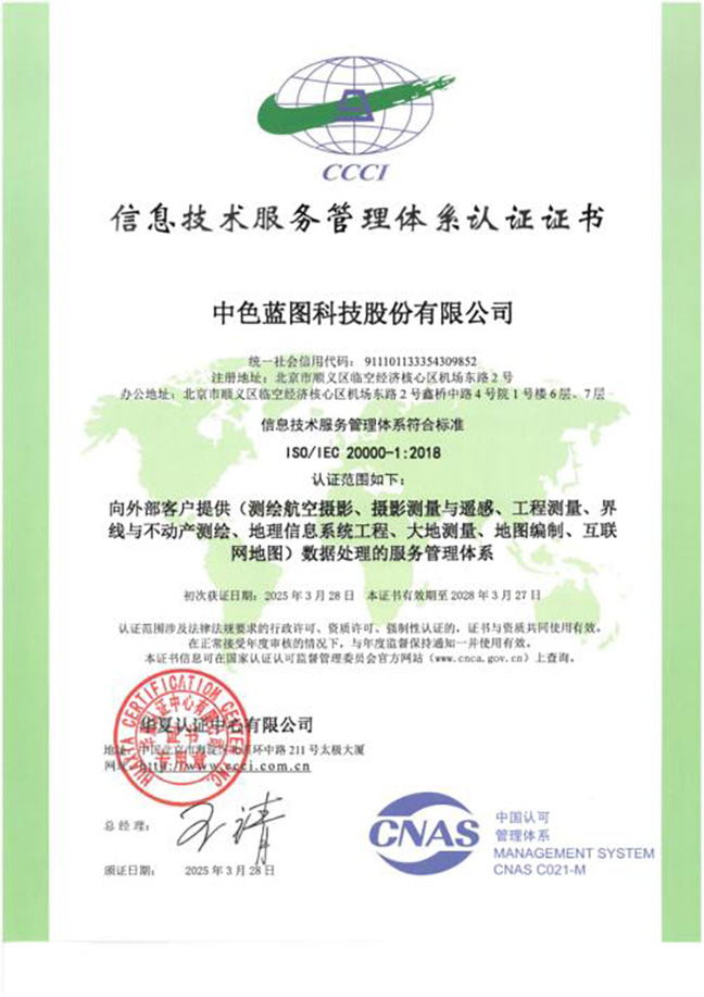 此次體系認證的通過,標志著中色藍圖已經建立了標準化、規范化、系統化的信息技術服務管理體系,將持續向外部客戶提供高質量、高效率地理信息技術服務及軟件服務,為集團高質量發展注入強勁動能,為行業高標準建設做出更大貢獻!