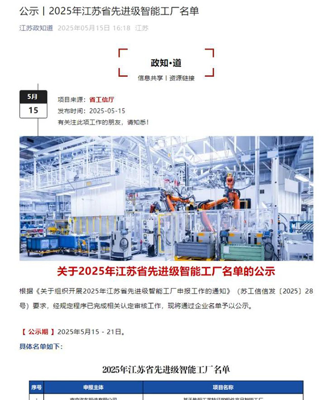 近日,江蘇省工業和信息化廳發布了 《2025年江蘇省先進級智能工廠名單》,鹽城國投新材料有限公司憑借“基于多模態智控的銅基精密導體智能工廠” 項目成功登榜。