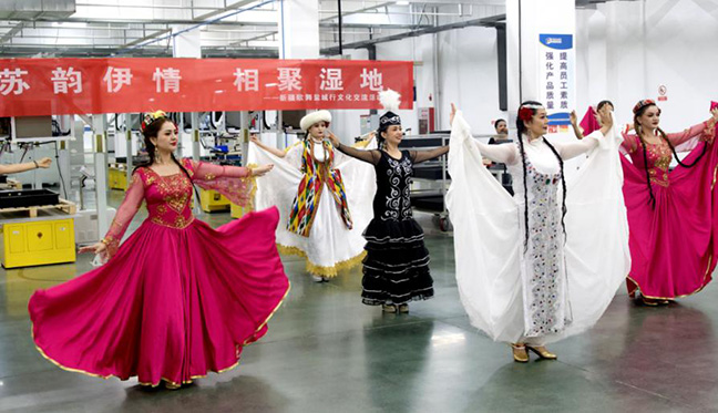 為進一步加強集團企業文化建設,履行國有企業社會責任,促進民族團結交流,5月13日至14日,鹽城國投集團邀請來自新疆伊犁察布查爾縣的文藝表演團隊,赴國投中科公司、鹽城天然氣開發公司、國投新材料公司、東南創投公司、鹽城萬豪酒店等單位開展演出活動,為一線職工帶來多場具有濃郁民族特色的文化體驗。