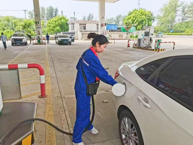 大徐加油站、金達加油站內車來車往,混合著汽車尾氣和車體熱量的地面熱氣升騰。一線工作人員頂著高溫在站內來回穿梭、跑動服務,一滴滴汗水掛在臉上,重復性的體力勞動考驗著他們的耐心和毅力,但工作人員絲毫未曾懈怠,專注的引導車輛、提槍加油,熱情服務每一位顧客。巡檢人員重點對加油機、油罐區、消防器材、電器線路、靜電接地線等重點區域和關鍵設備進行排查,并及時清理加油站周邊枯枝落葉、雜物雜草,杜絕消防隱患,營造規范有序的安全生產環境。