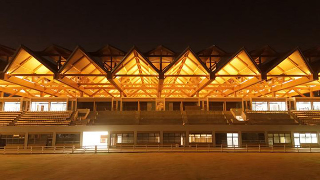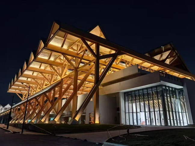 光明國際馬術中心的主場館以“木構新境、眾檐共景”為核心設計概念,整體采用膠合木結構。蘇州昆侖綠建在參與設計過程中,巧妙地將傳統(tǒng)木構的榫卯工藝與現(xiàn)代膠合木技術結合,既延續(xù)了千年木構技藝的匠心精髓,又賦予了建筑輕盈通透的現(xiàn)代美感,為場館的穩(wěn)固性與藝術性提供專業(yè)保障。