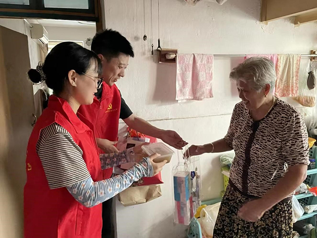 活動中,潤寧酒店黨支部的志愿者們來到漢西門社區(qū),為轄區(qū)內(nèi)老年人、快遞員等群體送上精心準備的綠豆湯和夏日清涼禮包,并向他們科普防暑降溫知識,叮囑他們注意休息、及時補水。貼心的問候,暖心的關(guān)懷,讓他們感受到社會濃濃的關(guān)愛。