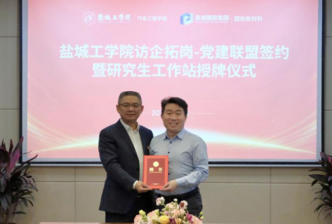 雙方還簽訂了黨建聯盟協議,王資生為國投新材料公司進行研究生工作站授牌,國投新材料公司為鹽城工學院汽車工程學院副院長鄭竹安頒發“科技副總”聘書。雙方一致表示,要以此次合作為契機,搭建學習交流平臺,在產學研深度融合、學院學生就業上進一步加強溝通對接、深化戰略合作,攜手譜寫校企合作新篇章。
